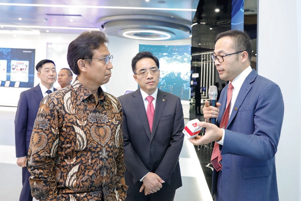 11月23日,印尼卫生部部长布迪·古纳迪·萨迪金先生,国家海洋与投资统筹部长特别顾问、中国印尼高级别对话合作机制副秘书长林优娜(Jona Widhagdo Putri)女士带领访问团一行到访PA电子科技生物上海产业园。PA电子科技生物董事长戴立忠、执行总经理彭铸、高级副总裁兼首席技术官殷鹏、副总经理朱健,君联资本执行董事戚飞等陪同参访。